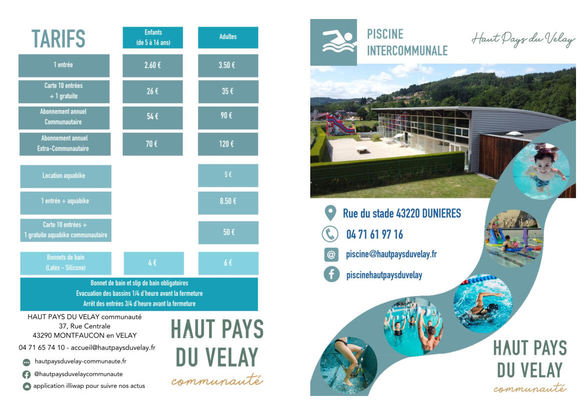 HORAIRES PISCINE 08/04/2026 horaires d’ouverture de la piscine à Dunières pour avril-mai et juin 2026.