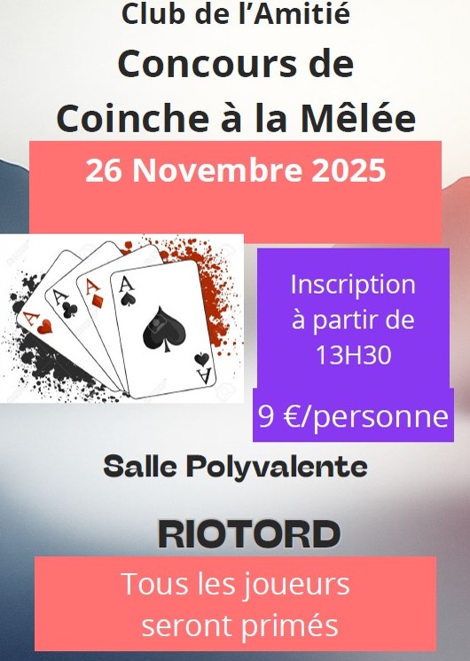 / đMercredi 26/11 : Concours de Coinche Ă la MĂȘlĂ©e đ