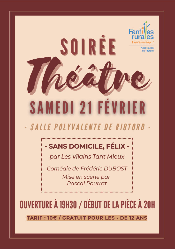 😊 Soirée Théâtre : Samedi 21 février à 20H 😊