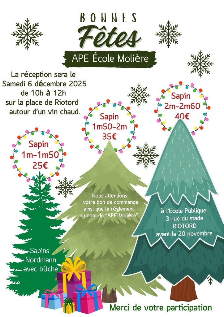 Vente sapins de Noël avant le 20/11récéption le samedi 06/12
