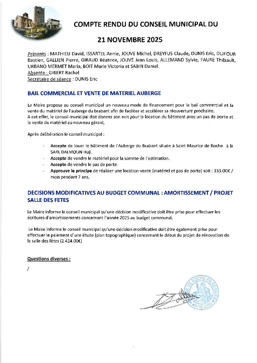 Compte Rendu Du Conseil Municipal Du 21 11 2025 12/12/2025 Ci-dessous le compte rendu du conseil du 21 11 2025 :