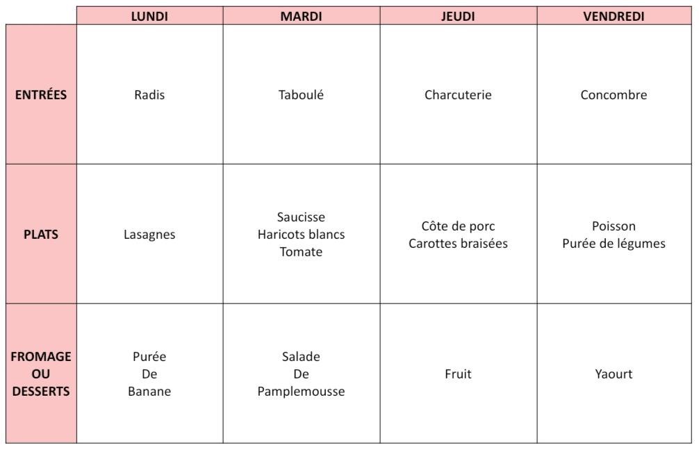 Votre mairie / Actualités / Menu cantine semaine du 20/04 au 24/04