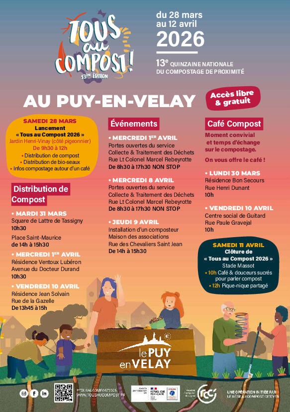 Dans le cadre de l'évènement national TOUS AU COMPOST 2026, une nouvelle permanence est proposée au pôle déchets de Rosières (Locaux ex-SICTOM - La Croix de Jalore - 43800 ROSIERES).