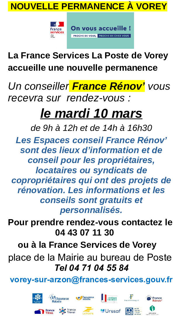 L'Espace France Services La Poste de Vorey accueille une nouvelle permanence.