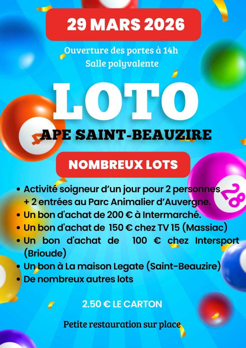 29 mars 2026 loto de L'A.P.E de Saint-Beauzire.