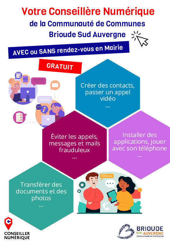 La conseillère numérique sera à la salle polyvalente à partir de 9 h 15 jusqu'à 12 h.