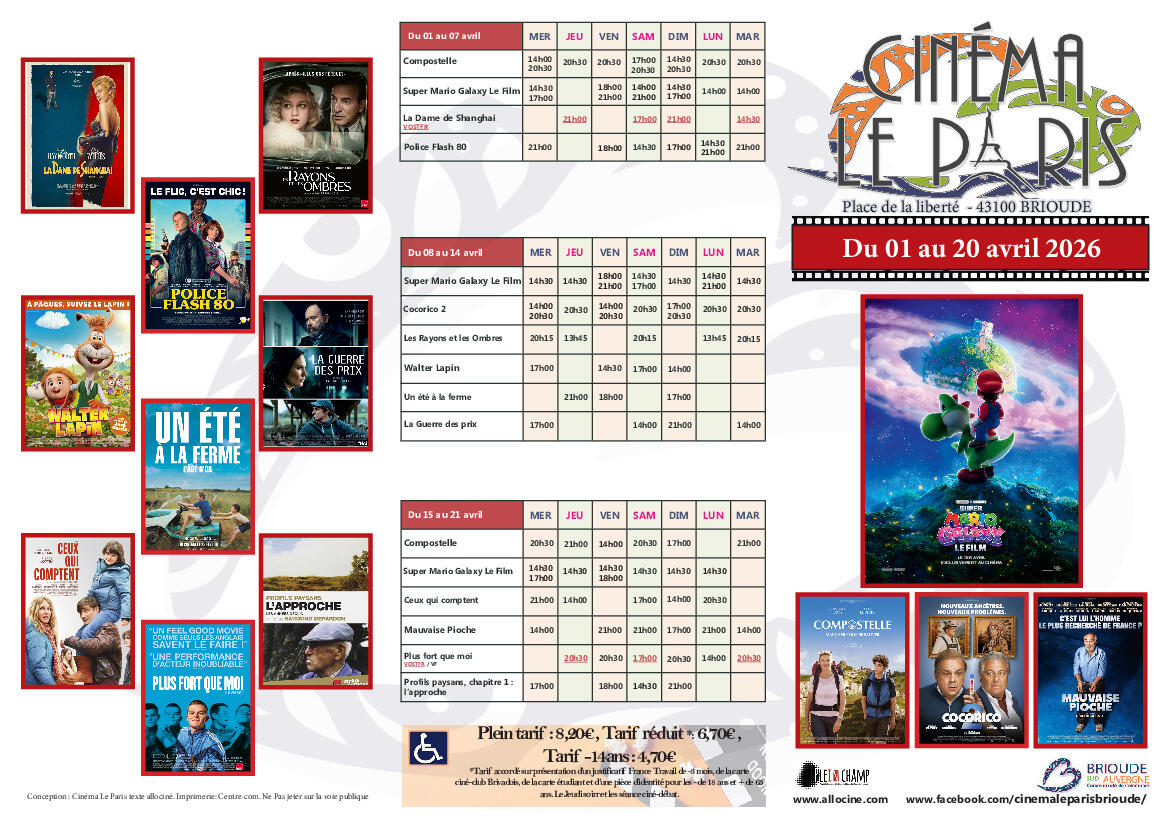 programme du Cinéma Le Paris du 1er au 21 avril 2026