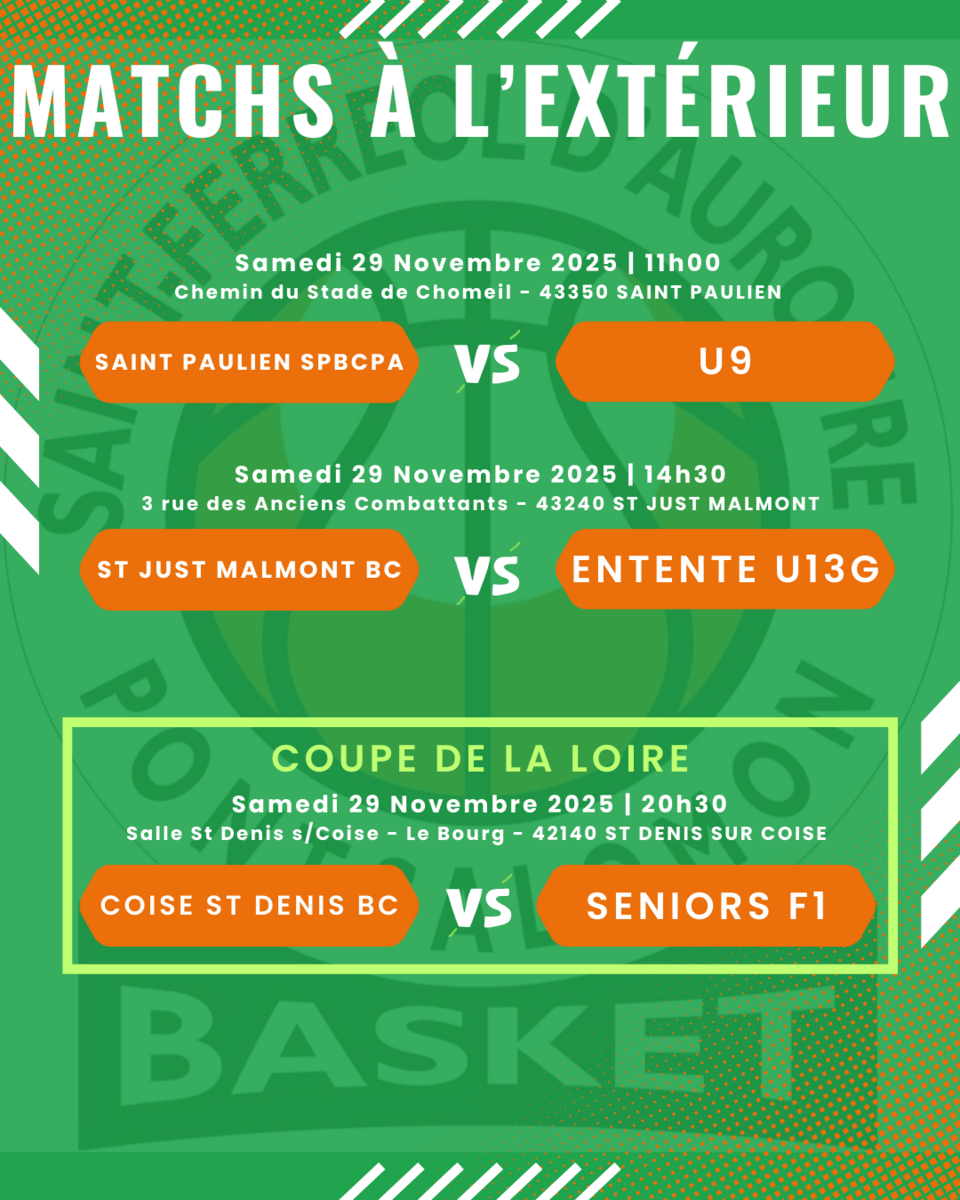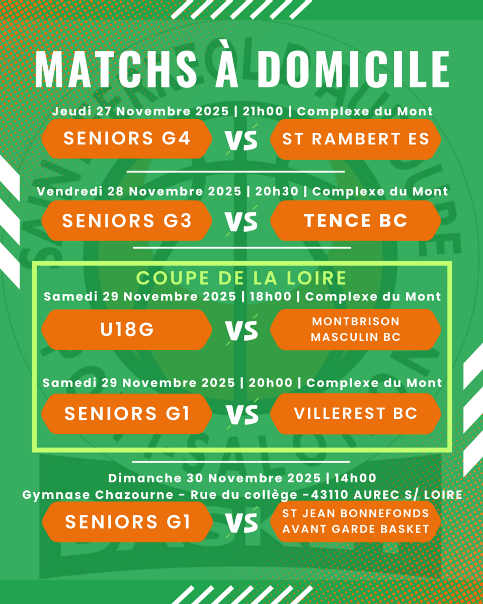 🏀 Matchs Basket 27/11/2025 Vous trouverez ci-joint les rencontres de basket qui se dérouleront ce week-end
