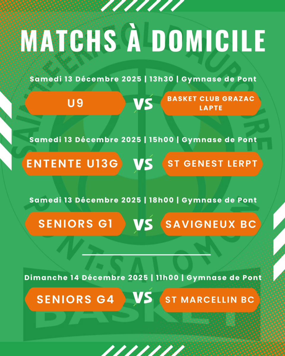 🏀 Matchs Basket 11/12/2025 Vous trouverez ci-joint les rencontres de basket qui se dérouleront ce week-end