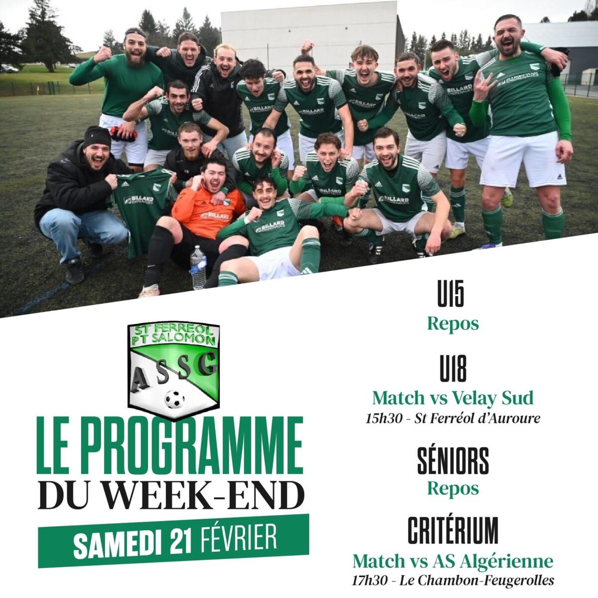 Programme des rencontres de l'ASSG 19/02/2026 ⚽Veuillez trouver les programmes des rencontres de ce week-end.