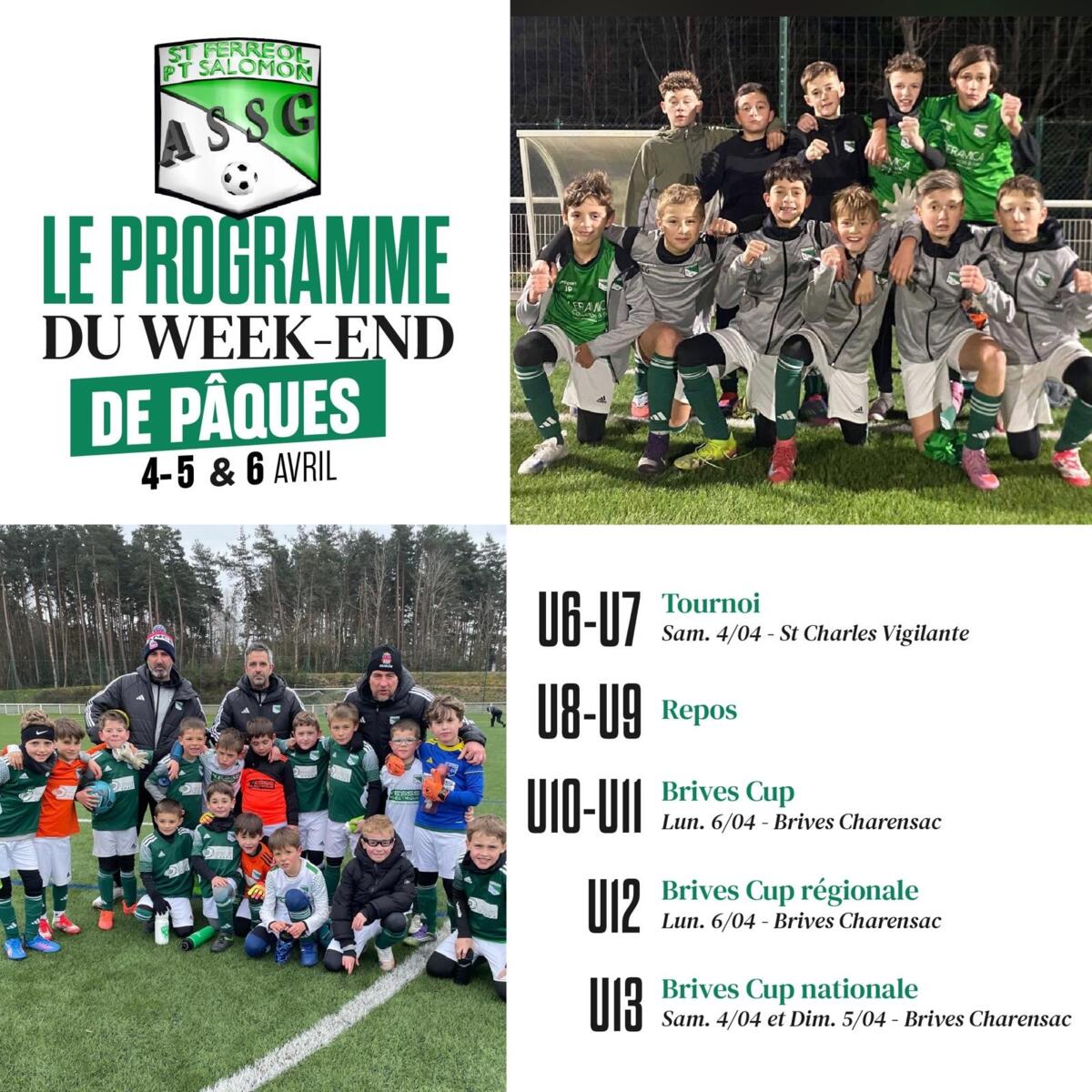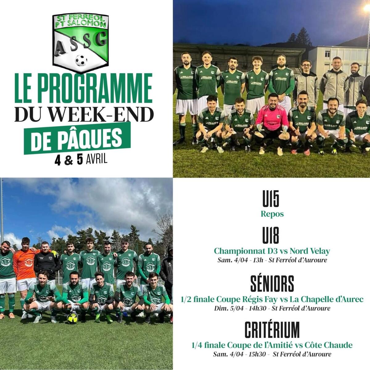 ⚽ Programme des rencontres de l'ASSG 03/04/2026 ⚽ Veuillez trouver les programmes des rencontres de ce week-end.