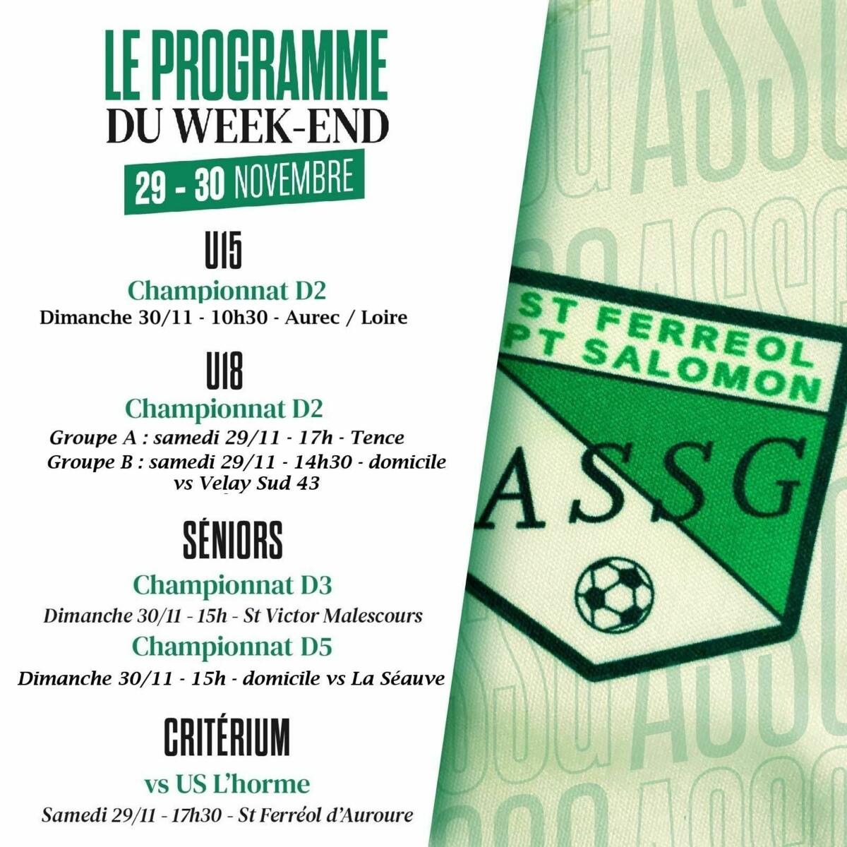 Découvrez le planning des matchs du club ASSG pour ce week-end (29–30 novembre) !