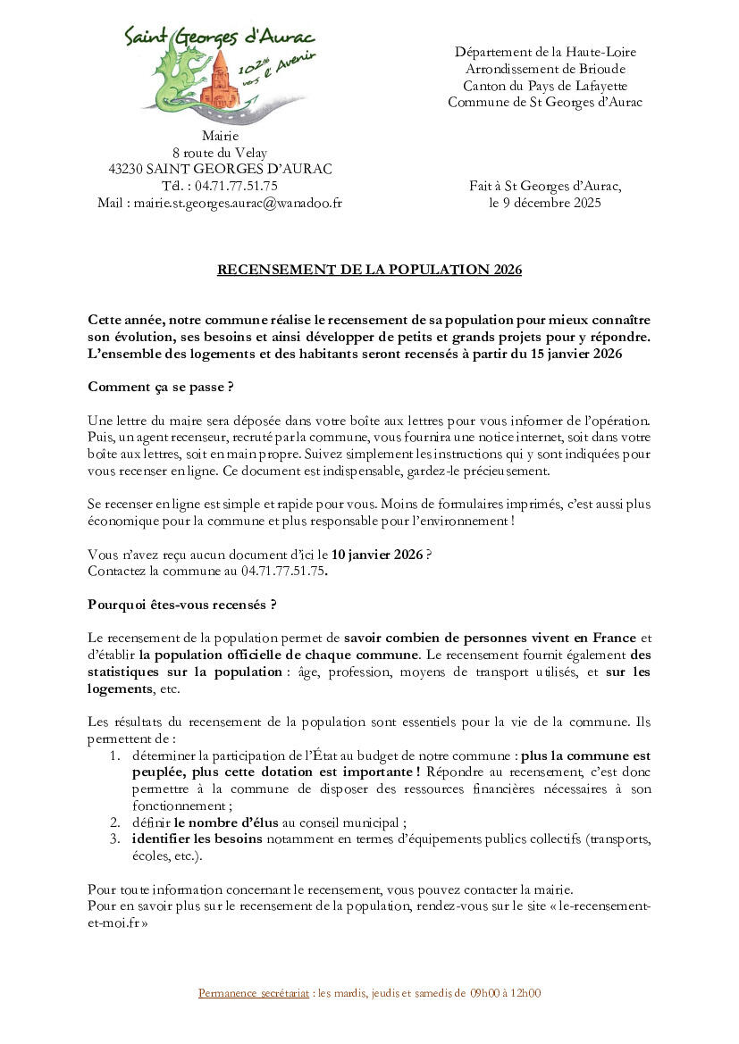 Toute l'actualité de Mairie de Saint-Georges-d'Aurac