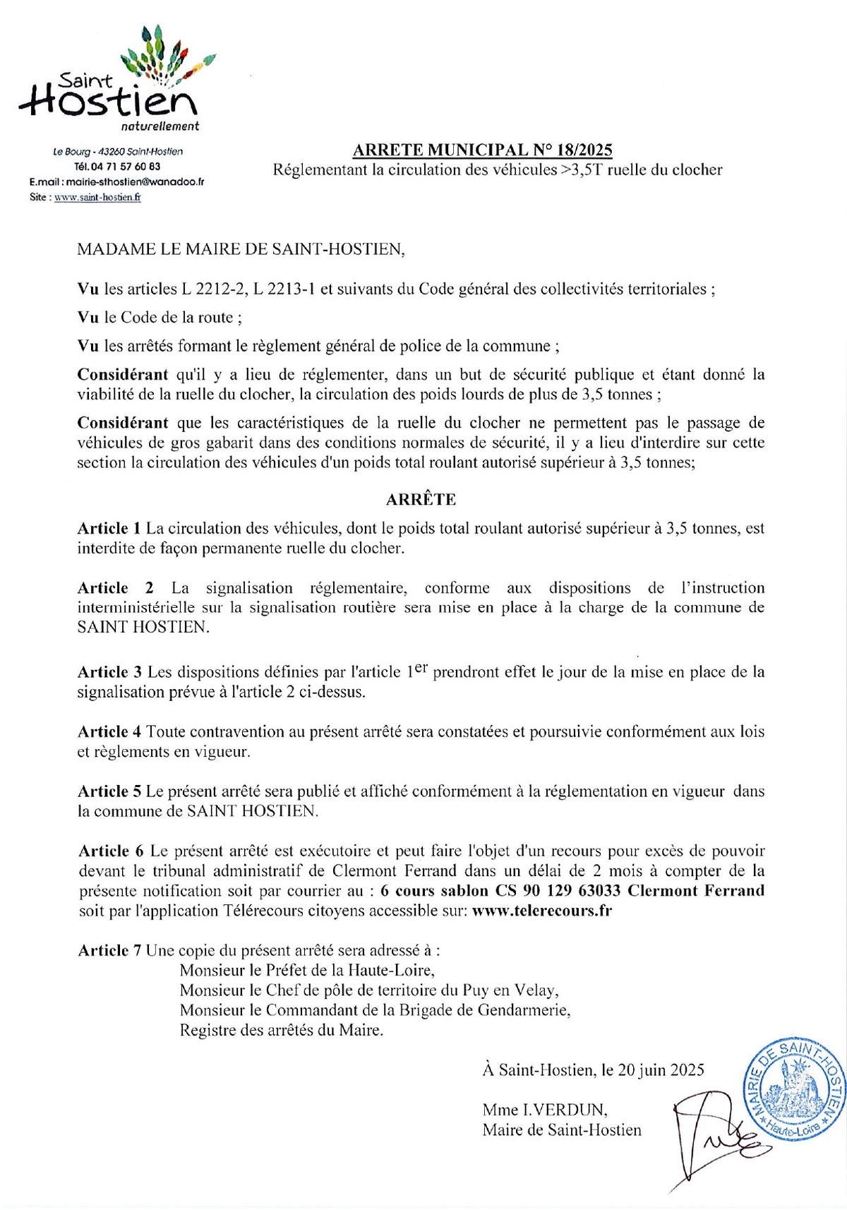 / Arrêté circulation >3,5T ruelle du clocher