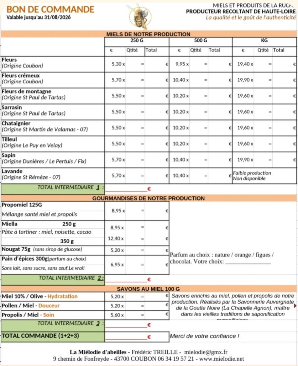 Vente De Miel 23/02/2026 L'APE de Saint Hostien communique, commande du 23 février et le 13 mars, livraison le 21 mars.