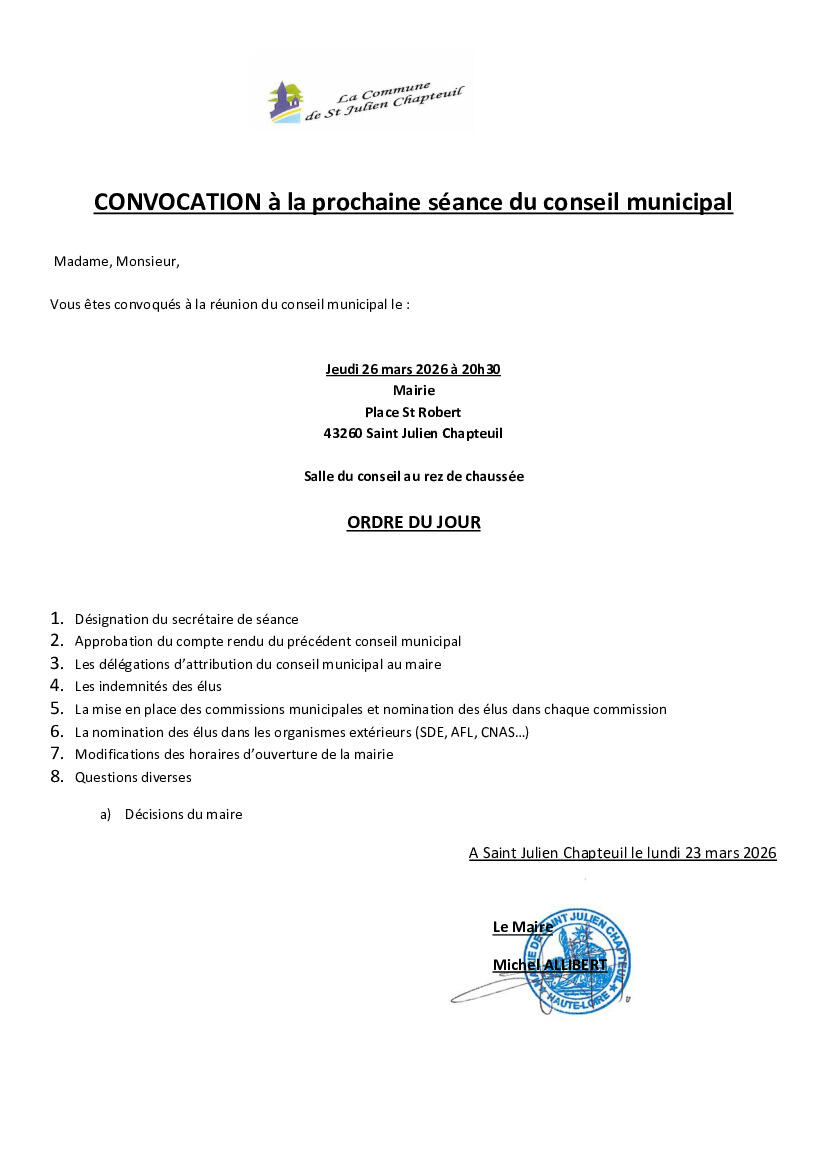 Toute l'actualité de Mairie de Saint Julien Chapteuil