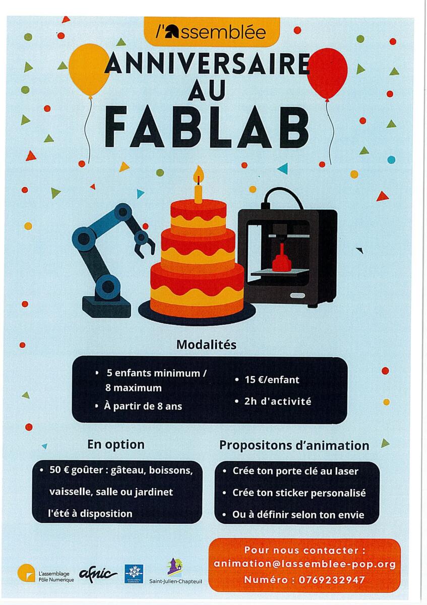 Le FABLAB organise vos anniversaires
