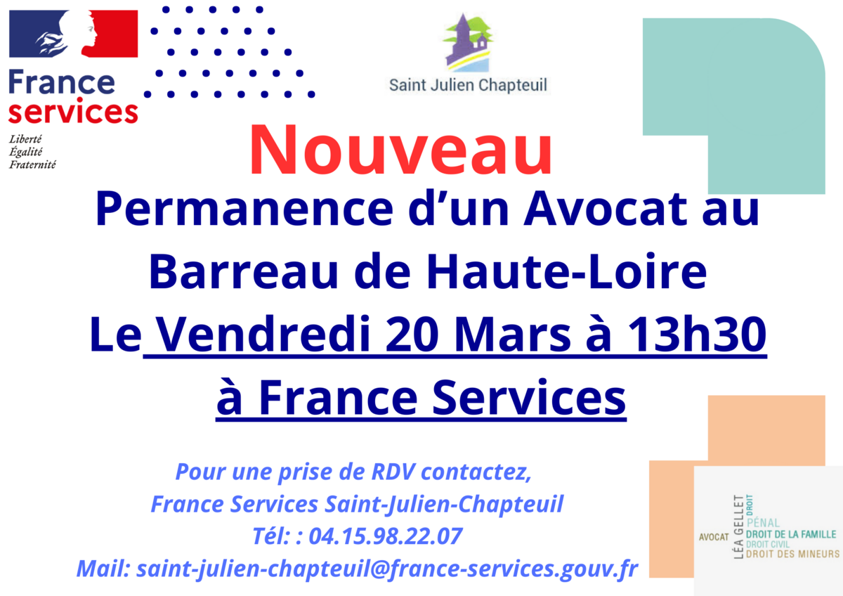 Permanence avocat à France services le 20/03