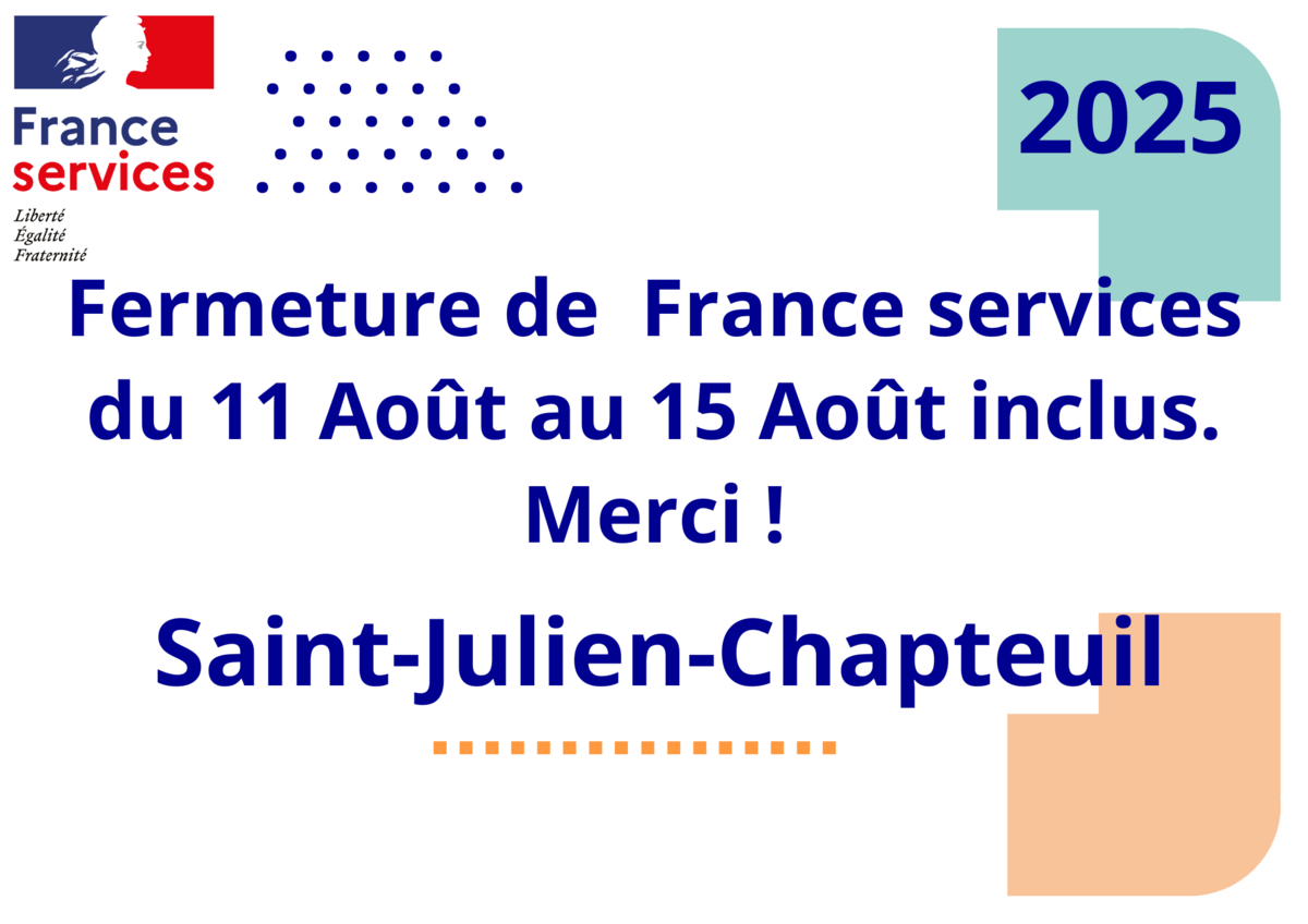 L'accueil de France Services sera  fermé du lundi 11 août au vendredi 15 août inclus.