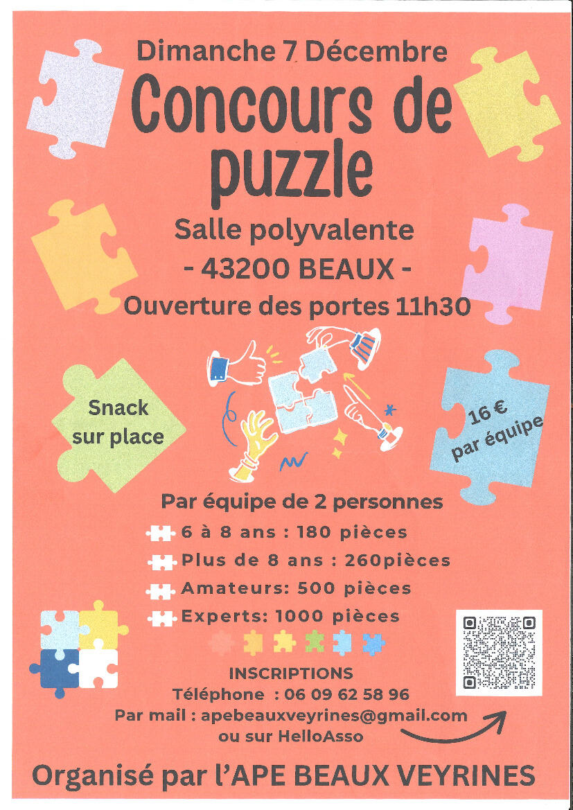 🧩 Concours de Puzzle – Dimanche 7 décembre 2025 à 11h30
