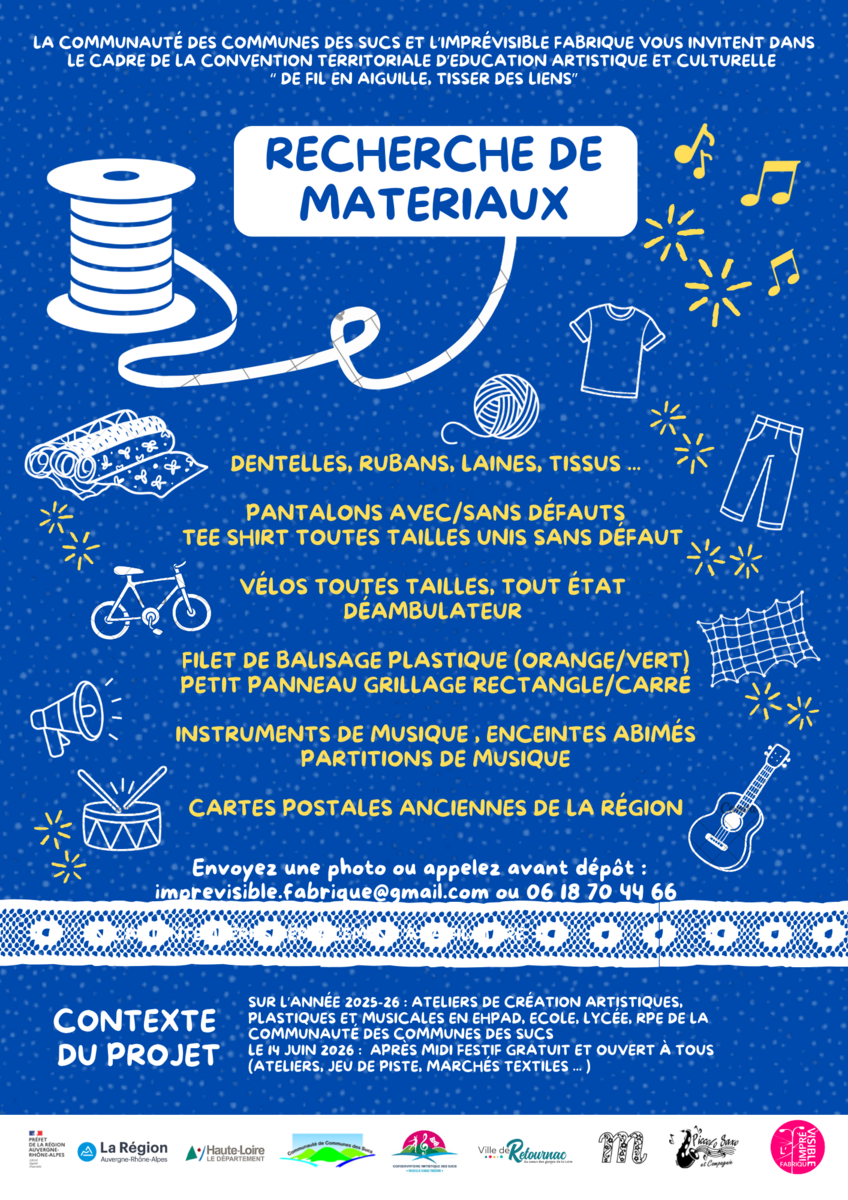 Dans le cadre du projet « De fil en aiguille, tisser des liens », nous lançons une collecte de matériaux pour des ateliers de création artistique 🎨