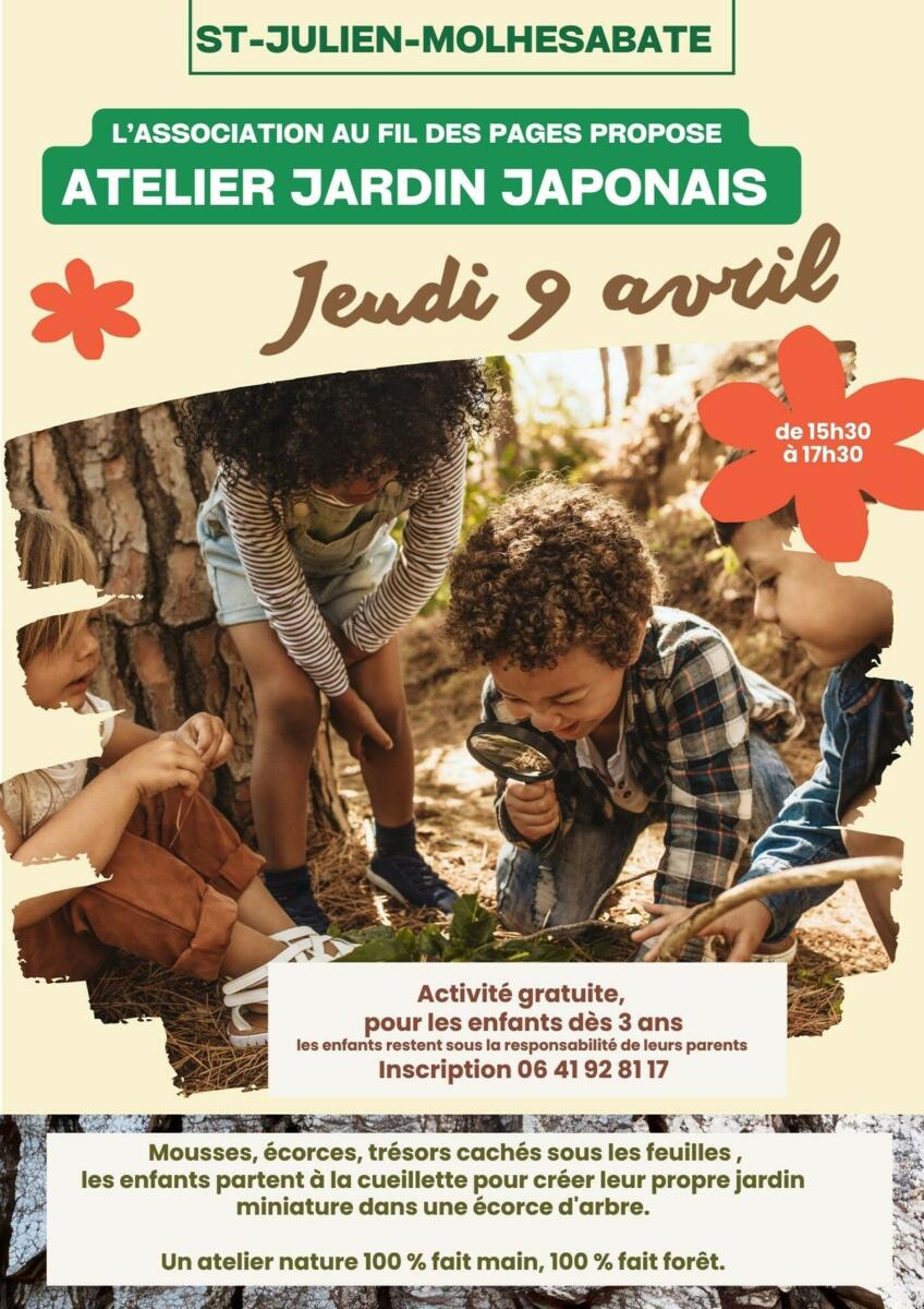 L'activité a lieu dans les bois où les enfants ramassent mousses et autres merveilles pour faire un jardin miniature dans une écorce d'arbre.