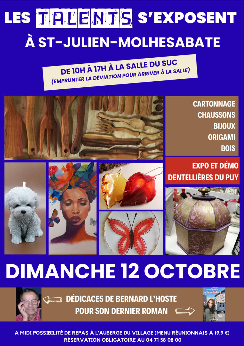 les talents s'exposent à St Julien 19/09/2025 ainsi que Bernard L 'HOSTE pour dédicacer son dernier roman