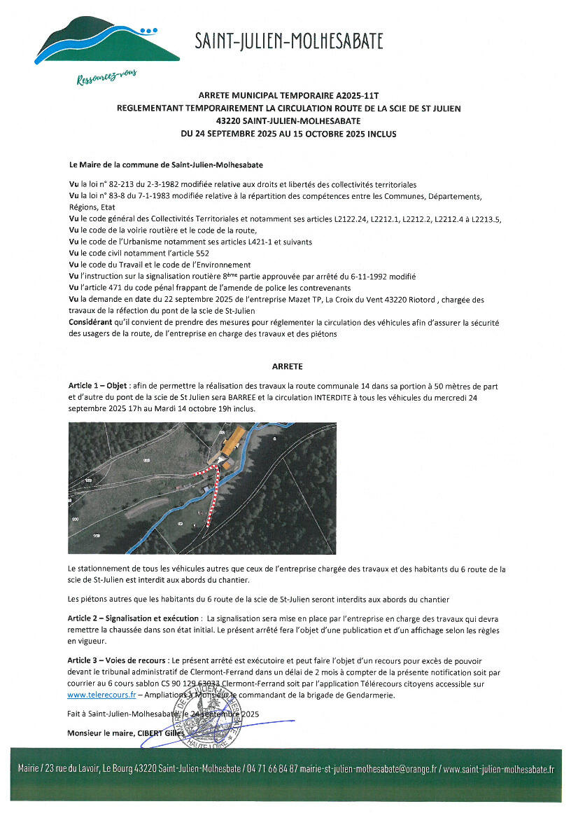 Votre mairie / Actualités / Scie de Saint-Julien - Arrêté de circulation