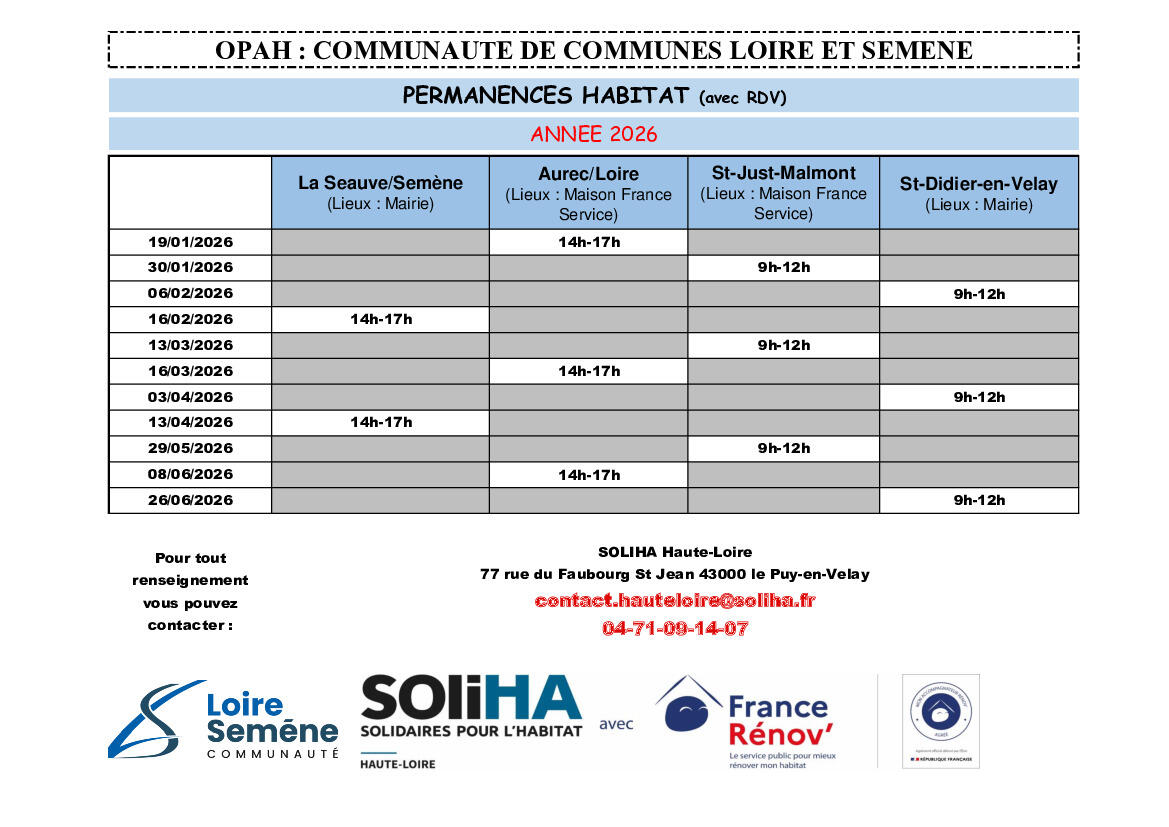 Renseignements au 04 71 09 14 07 ou par mail contact.hauteloire@soliha.fr