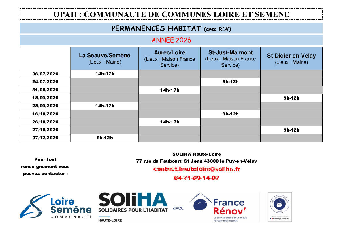 Renseignements au 04 71 09 14 07 ou par mail contact.hauteloire@soliha.fr