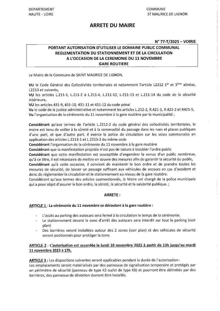 Arrêté cérémonie du 11 novembre