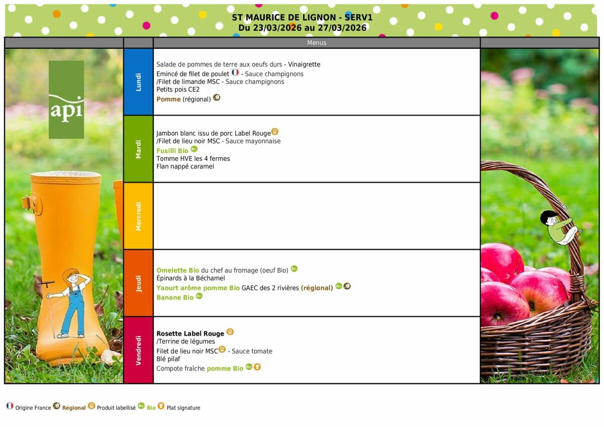 🍽 Menus de la cantine Semaine du 23 au 27 mars 2026 🍽