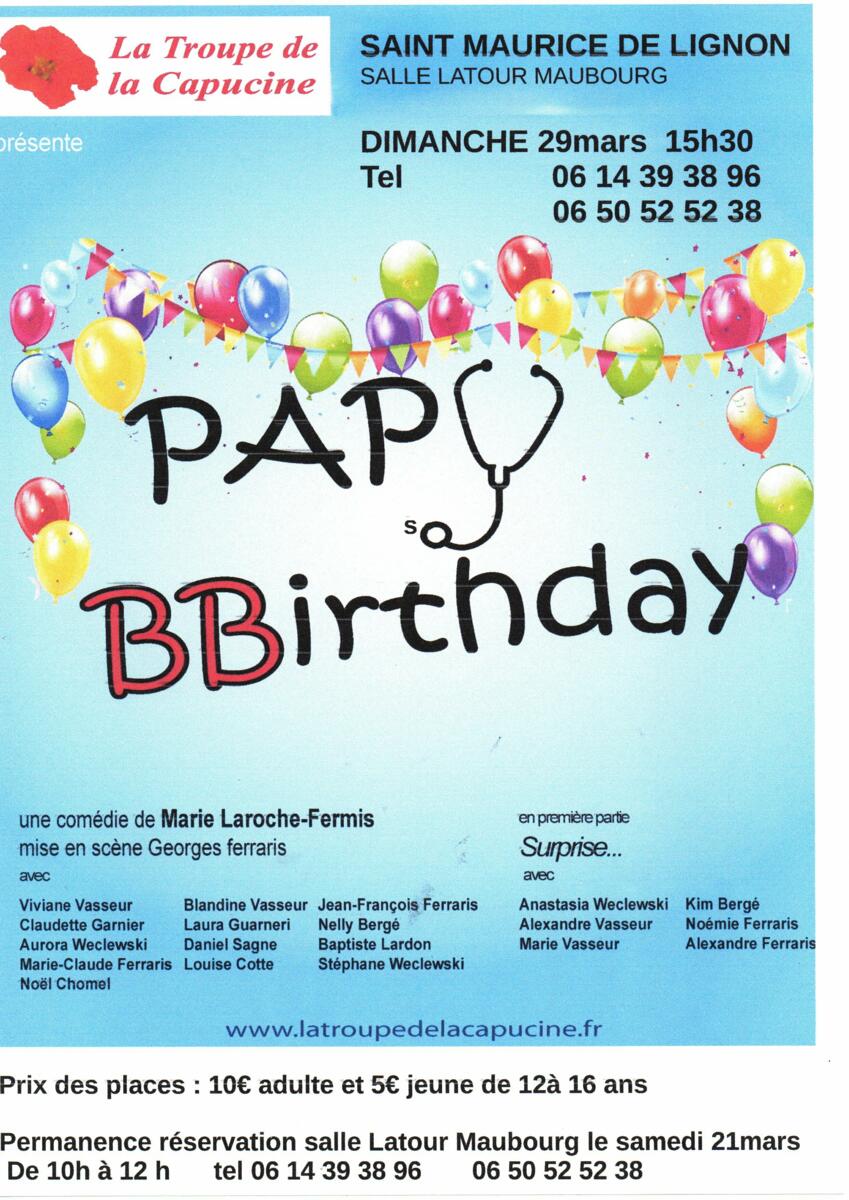 Théâtre : Papys BBirthday - Dimanche 29 mars 2026 - 15h30