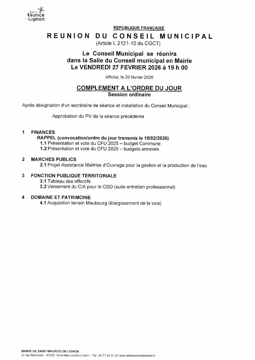 Ordre du jour - Conseil municipal - Vendredi 27 février 2026