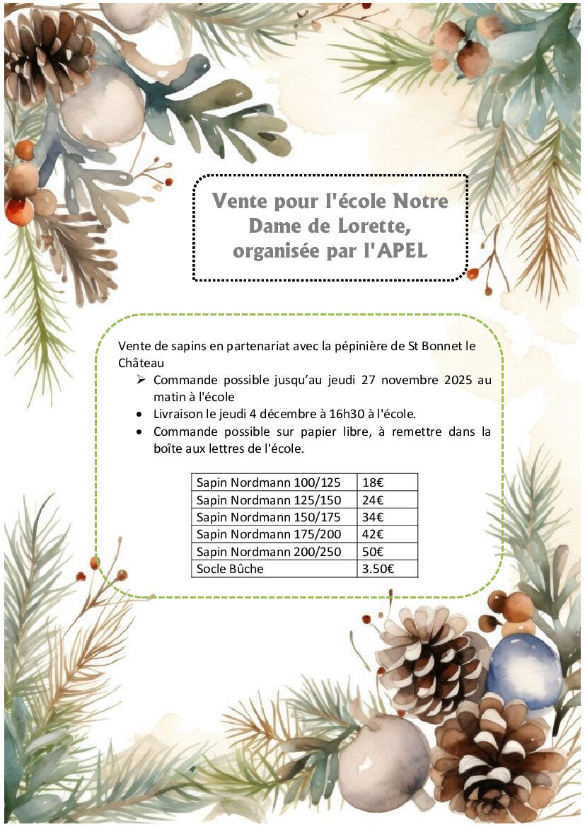 VENTE DE SAPINS DE NOEL à retirer le 4/12