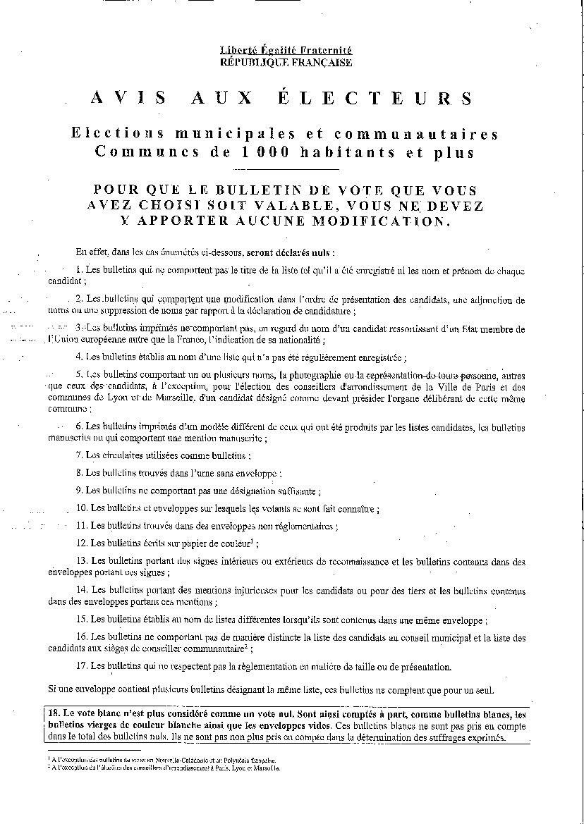 - pour que le bulletin de vote que vous avez choisi soit valable, vous ne devez y apporter aucune modification.
