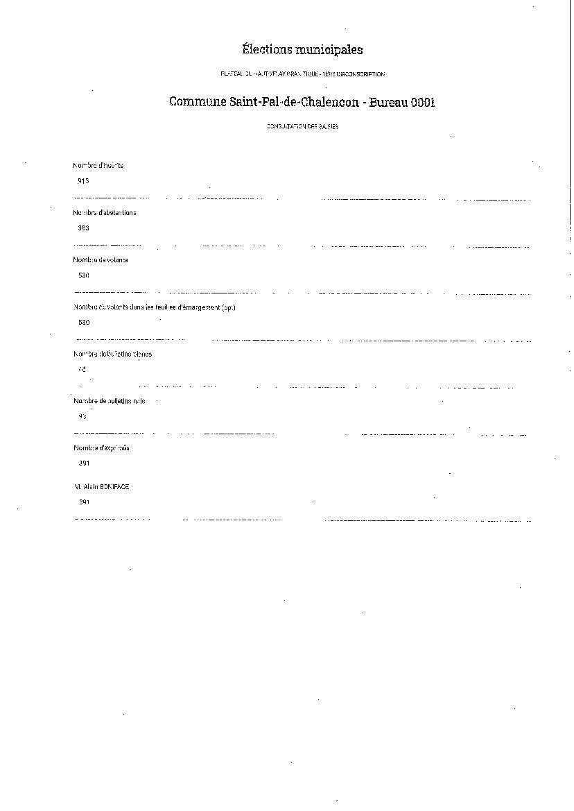 Résultats des Elections Municipales 16/03/2026 Voici les résultats pour la commune de St Pal de Chalencon :