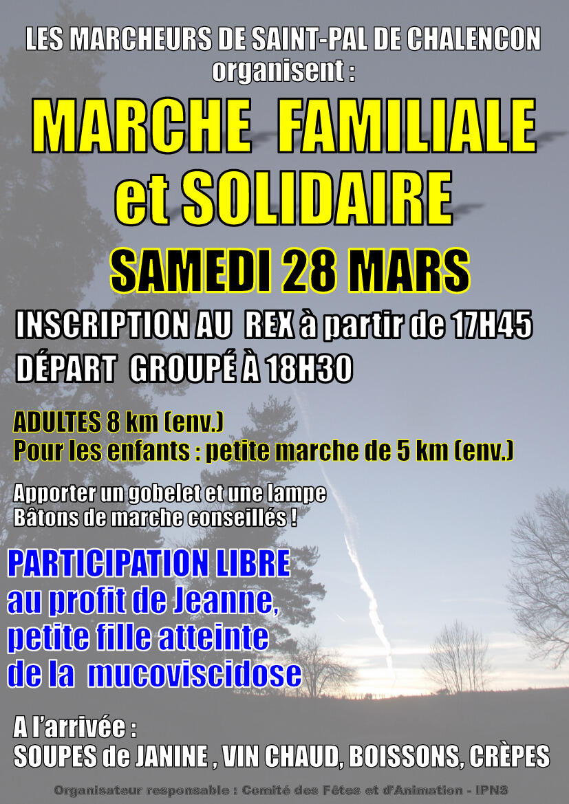 Samedi 28 Mars 2026, les marcheurs de St Pal de Chalencon organisent une marche familiale et solidaire.