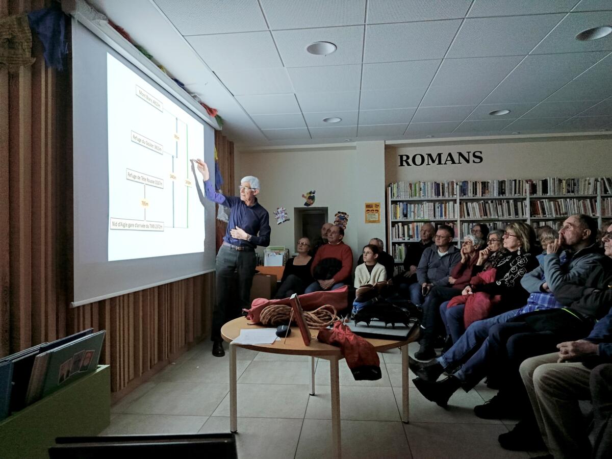 Le diaporama sur le Mont-Blanc, organisé par l'équipe de la médiathèque a attiré un nombreux auditoire, ce samedi 14 mars. Grâce aux très beaux clichés transmis par Paul Fraisse et les commentaires de cet amoureux de la montagne, près de 75 personnes ont pu participer, en images, à l'ascension du Mont Blanc le plus haut sommet d’Europe occidentale qui culmine à 4810 mètres. Les commentaires de Paul Fraisse ont plongé le public dans les coulisses de ses expéditions effectuées il y a plus de 20 ans. Encordé, en crampons, en piolets, en refuge et en glacier, Paul a humblement évoquer comment se dépasser physiquement, aller au-delà de ses propres limites, comment être solidaire dans l’adversité au sein d’une expédition collective. Les photos ont su transmettre les beautés  d'une aventure hors normes et inoubliable.