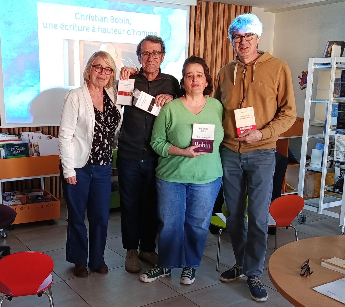 L'équipe de la médiathèque invite Sylvie Couvreur, Maud Tourron, Gilles Agostinho et Jacques Milhas de l'association apinacoise "L'ArBre à Cannes", afin de découvrir une partie de l’œuvre de l'écrivain Christian Bobin. Ce dernier a retenu l’attention des lecteurs et lectrices par son écriture accessible, à la fois poétique et simple. Parce que Bobin parle directement au lecteur et sait mêler les petites choses et les grandes questions, le nouveau spectacle de l’ABC Christian Bobin, une écriture à hauteur d’Homme , aborde des textes courts touchant l’universel, le quotidien et illustrés par des portraits d’œuvres ou d’artistes. Afin de découvrir l’univers et la plume de Christian Bobin, une rencontre (durée 45 minutes) est programmée, le vendredi 3 avril à 18h30 à la médiathèque municipale Geneviève Braconnot. L’entrée se fera au chapeau, sans réservation. Des ouvrages de Christian Bobin sont disponibles à l'emprunt.