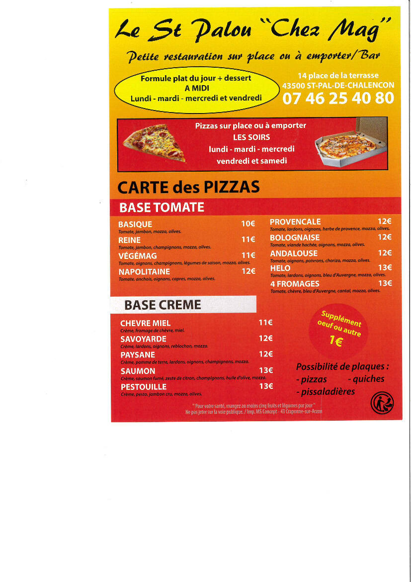 Pizzas tous les soirs et vendredi midi.