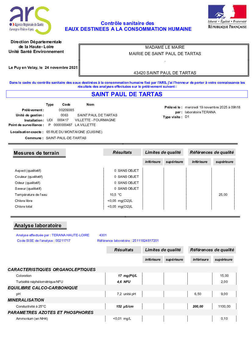 [ANALYSES EAU POTABLE]
