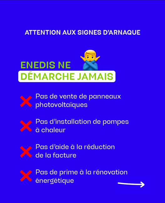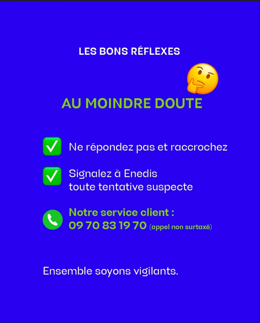Enedis appelle ses clients à la plus grande vigilance et rappelle que :