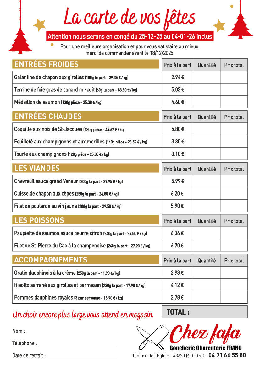 Menus pour les fêtes