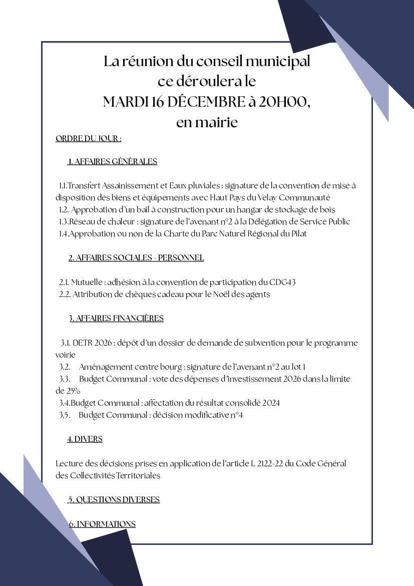 Réunion du Conseil Municipal