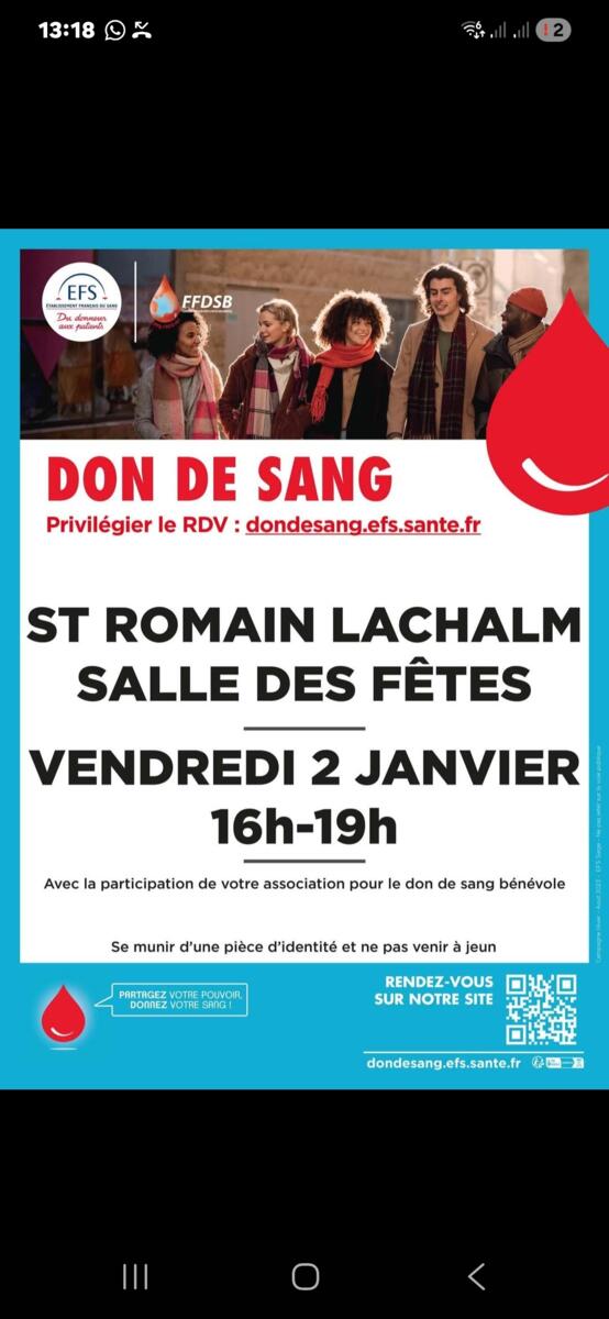 Don du sang 02 janvier 2025 St Romain Lachalm