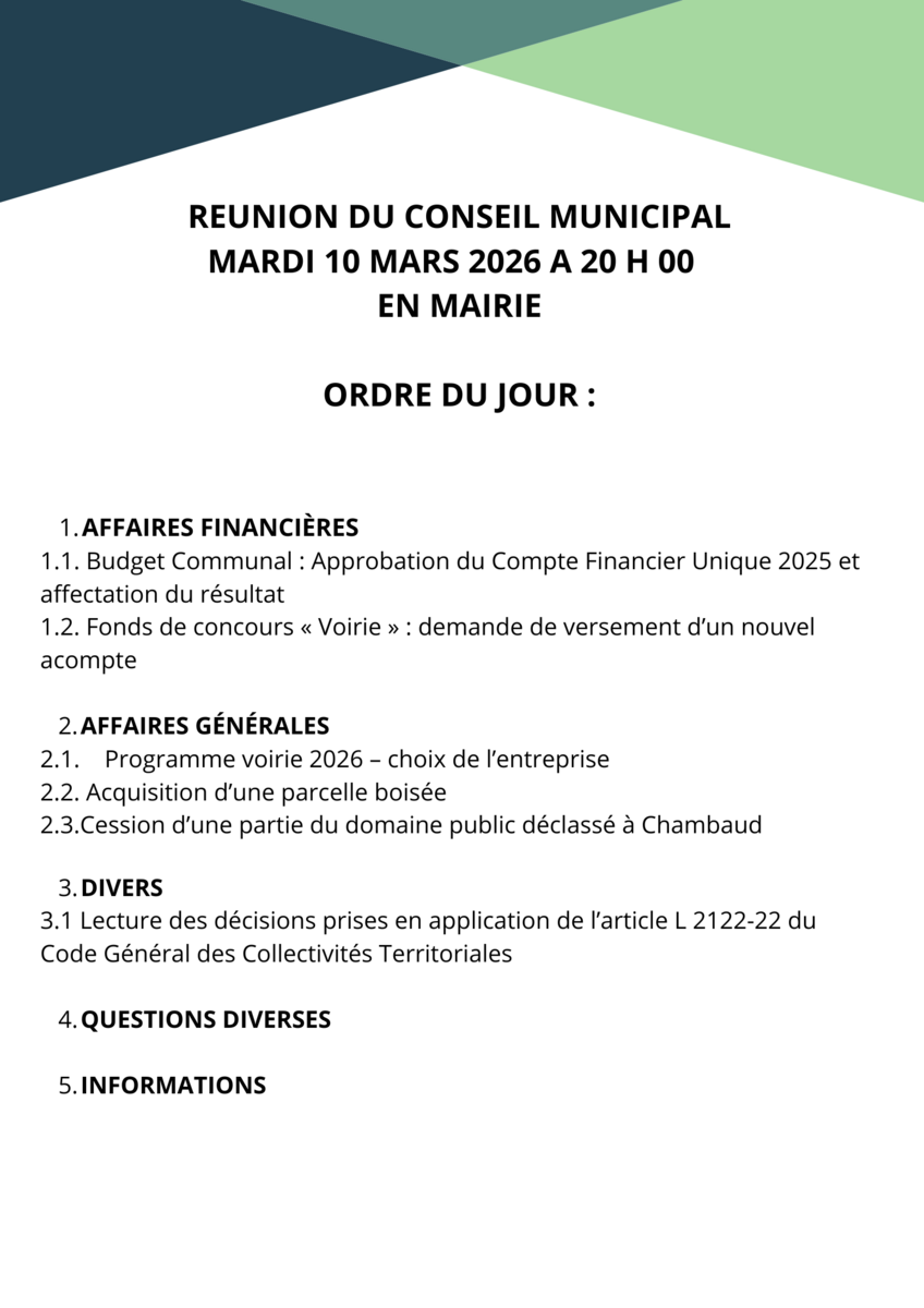 Mardi 10 mars 2026 à 20 h 00 en Mairie