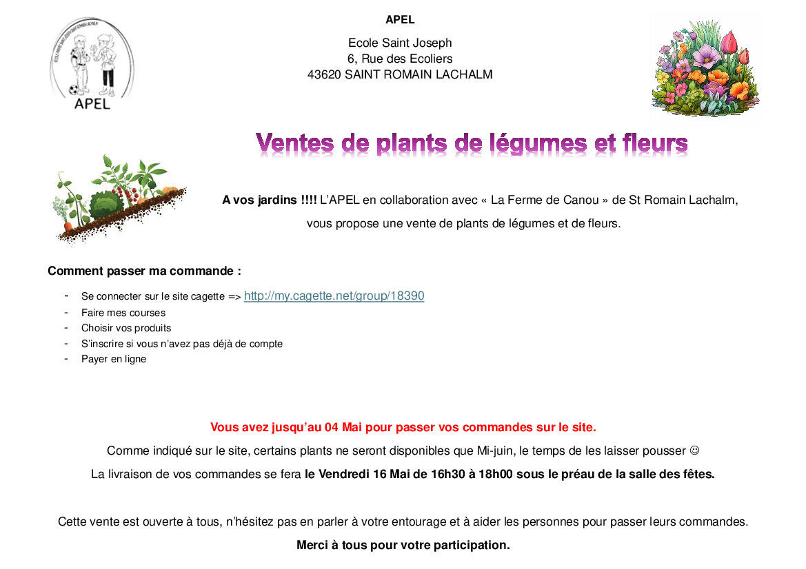 vous propose une vente de plants de légumes et de fleurs jusqu'au 4 mai