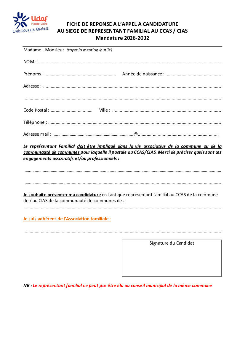 Votre mairie / Actualités / Appel à candidature représentant familial en CCAS/CIAS