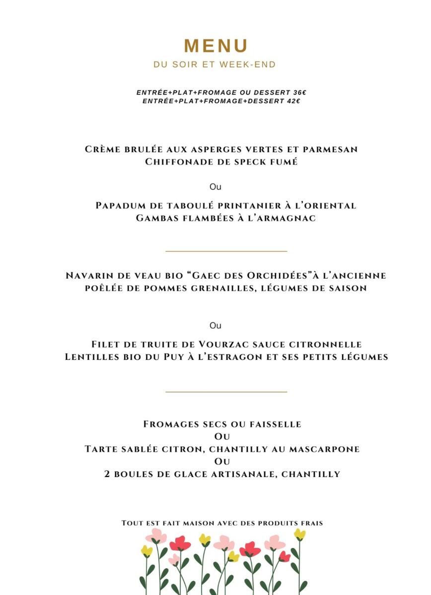 Le menu du vendredi soir et du week-end prend ses couleurs de printemps à L'ESTAMPILLE.